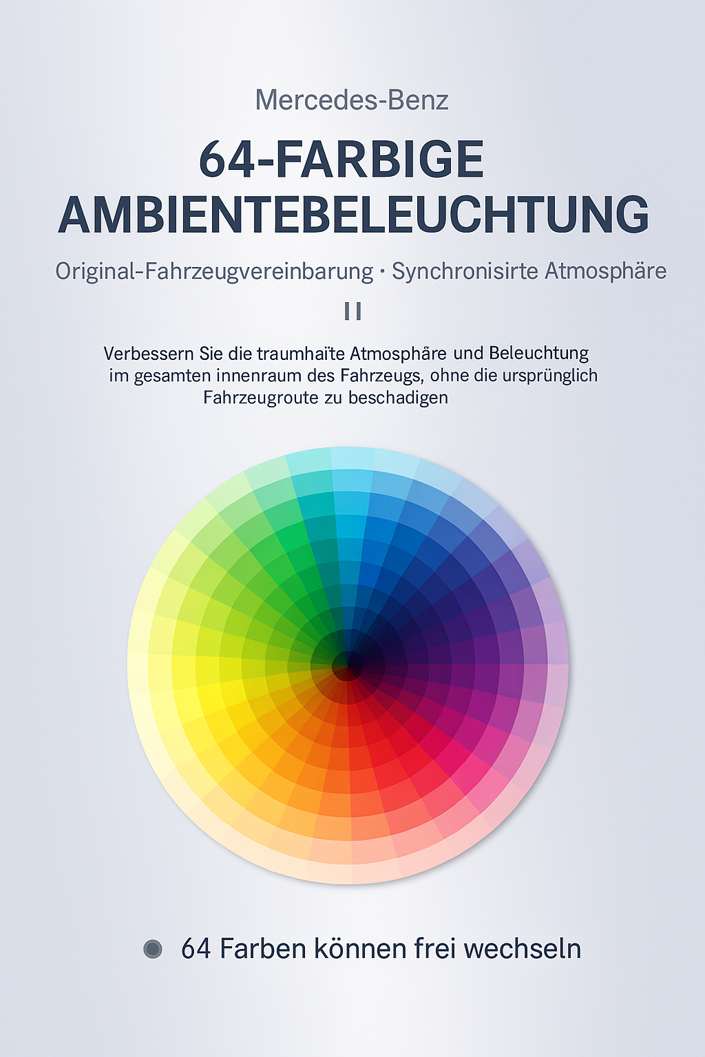 - Bis zu 64 Farben wählbar – abgestimmt auf die werkseitige Ambientebeleuchtung