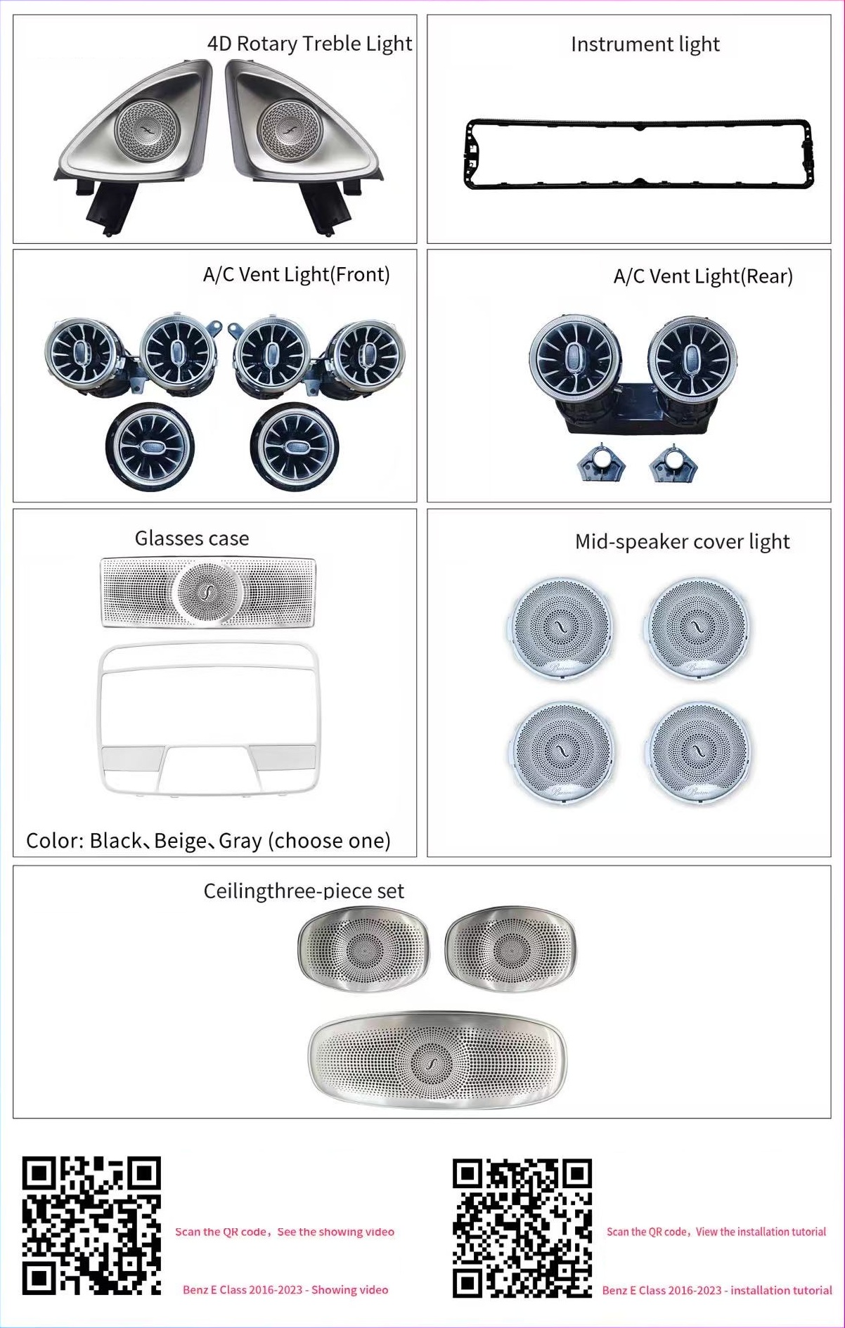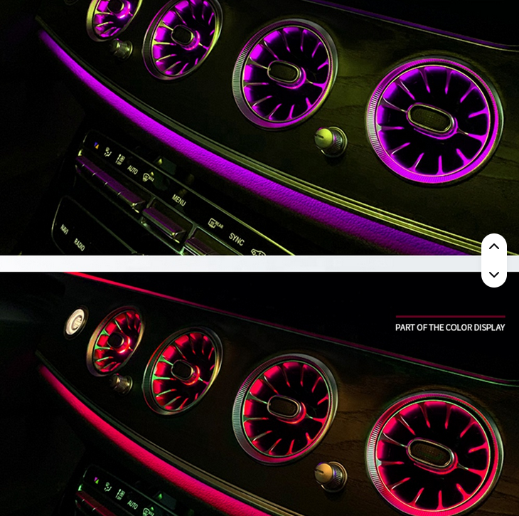 - A/C Lüftungslicht (Hinten): Set für die hinteren Lüftungsdüsen (2-Düsen-Einheit inkl. Zubehörteilen).