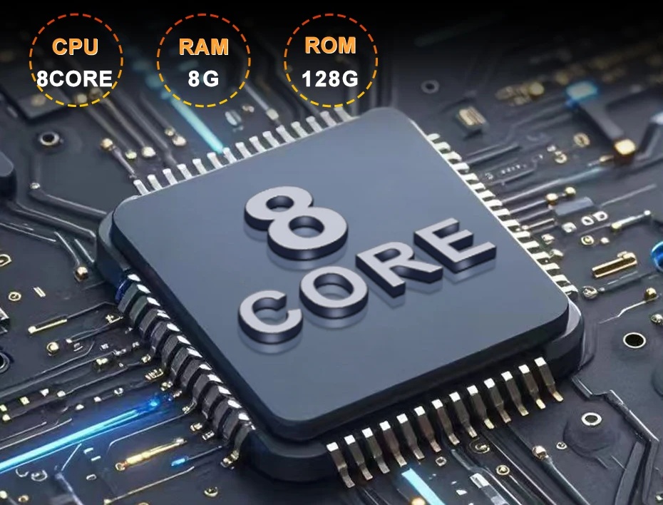 Technische Basis: 8‑Kern Prozessor • 8 GB Arbeitsspeicher • 128 GB interner Speicher • Android 14