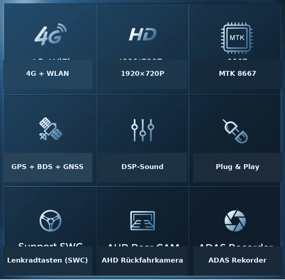Je nach Ausstattung werden Funktionen wie Rückfahrkamera/PDC-Anzeige weiterhin unterstützt. Heißt: Du bekommst den modernen Screen, ohne auf wichtige Fahrzeugfeatures zu verzichten.